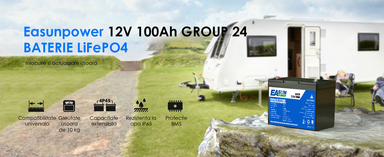 Bateria cu ciclu profund Easunpower de 12V 100Ah grupa 24 a fost construită pe baza dimensiunii celei mai omniprezente a standardului de dimensiuni ale bateriilor BCI „Grupa 24”, permițându-i să funcționeze eficient într-o varietate de vehicule și aplicații. Este compatibilă la nivel global cu cutia bateriei grupa 24 și cu toate tipurile de rulote de pe piață. Această baterie de litiu grupa 24 nu va ocupa mult spațiu de instalare și este un înlocuitor simplu pentru AGM Grupa 24//27/31, fără a necesita operațiuni suplimentare sau cablaje complicate.