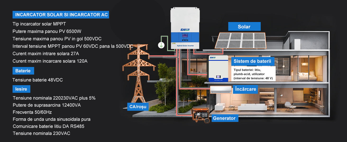 EASUN 6.2KW Off Grid Inverter cu MPPT integrat 120A și Wifi, funcționează fără baterie