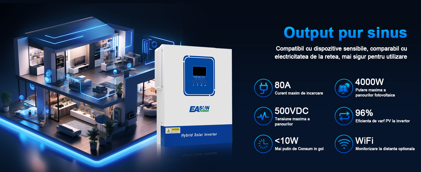 Controler de încărcare solară EASUN POWER 4000W cu undă sinusoidală pură și Wi-Fi